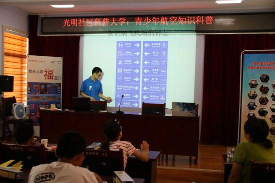 该次宣讲共分为三部分,包括“航空基础知识普及”、“航模宣传与模型结构”、“乘机知识讲堂”。分别由团队成员李诚、张新洲、杨传军向前来聆听宣讲的社区小朋友以及航模爱好者做了PPT讲演。