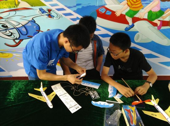 结束了两天的“航空宣讲”与“航模展览”活动之后,7月17日,“雏鹰”航模科普团带着为社区小朋友们准备好的手抛式泡沫飞机模型与上弦式塑料飞机模型两种材料,现场教小朋友们组装模型,以更好地帮助小朋友们了解飞机构造与飞行原理。