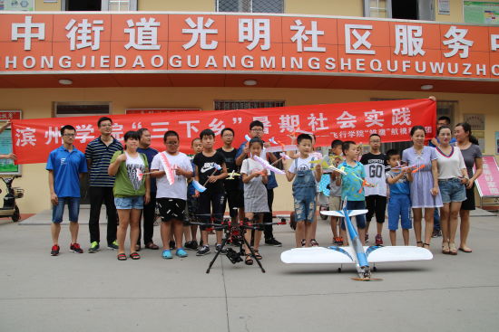 7月15日,滨州学院飞行学院“雏鹰”航模科普团暑期“三下乡”社会实践团队一行8人前往滨城区市中街道光明社区,开启了为期5天的“航模”科普实践活动。