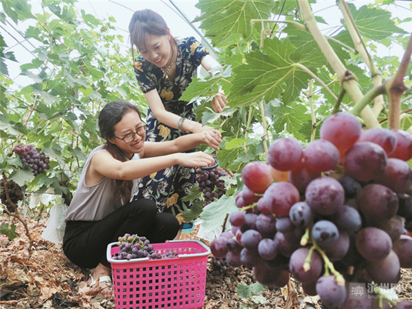 滨州日报·滨州网7月24日讯 7月21日,无棣县车王镇大河畔葡萄园的葡萄长廊里迎来首批采摘游客,刚刚成熟的葡萄似珍珠、赛玛瑙,游客边吃边摘,甜在心头。