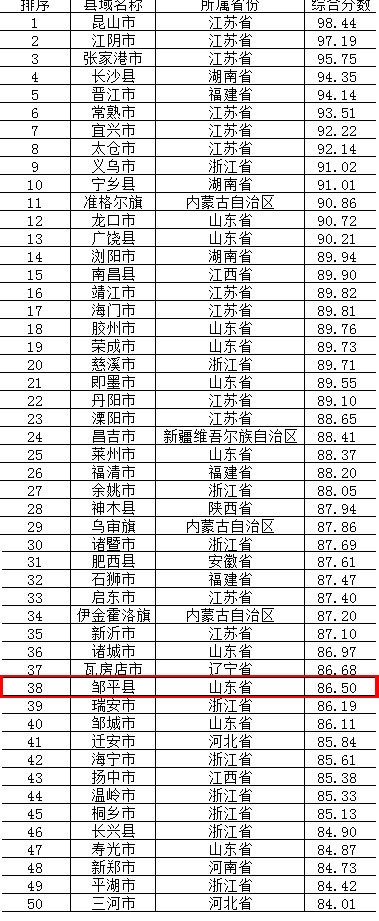 榜单上,内蒙古自治区占3席,河北省占2席,其中内蒙古的准格尔旗以极小差距屈居湖南省宁乡县之后,排名第11位。