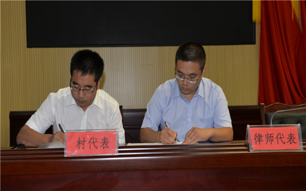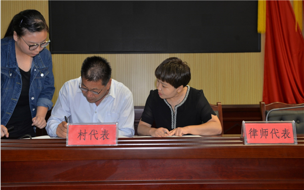 会议现场进行了签约仪式,甜水村以及里八田村代表分别与相关法律顾问进行了现场签约,法律顾问代表进行了发言。