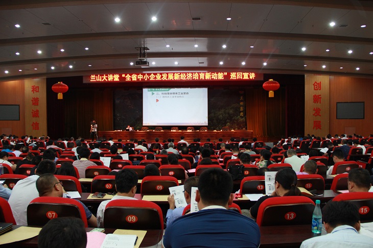 根据省局工作安排,8月25日、9月1日,全省中小企业发展新经济培育新动能巡回宣讲分别在临沂市郯城县、兰山区举办。郯城县县级领导同志、各乡镇(街道、开发区)、县委各部门、县直各单位副科级以上干部及县规模以上工业企业主要负责人,兰山区副县级以上领导干部、区直各部门主要负责人、区传统产业转型升级相关责任部门副科级以上干部,各镇街道、兰山经济开发区副科级以上干部及区规模企业主要负责人等,共计1500余人到会听取报告。