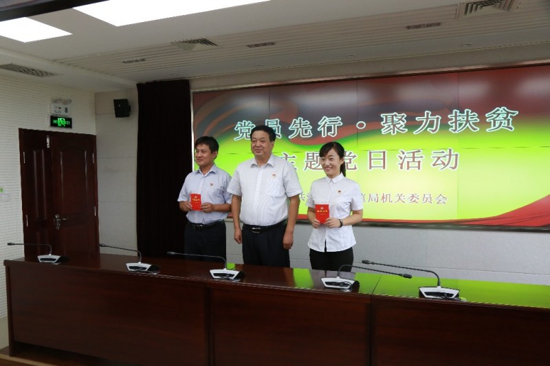 局党组书记刘学俭同志带领全体党员现场捐款,并为捐款党员代表颁发个人捐赠证书。包括退休党员在内的全体82名党员捐款19200元,献出拳拳爱心,助力精准扶贫。