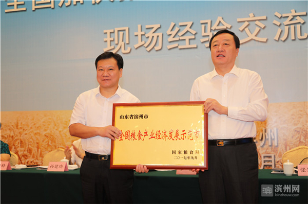 会上,我市被国家粮食局授予“全国粮食产业经济发展示范市”称号。