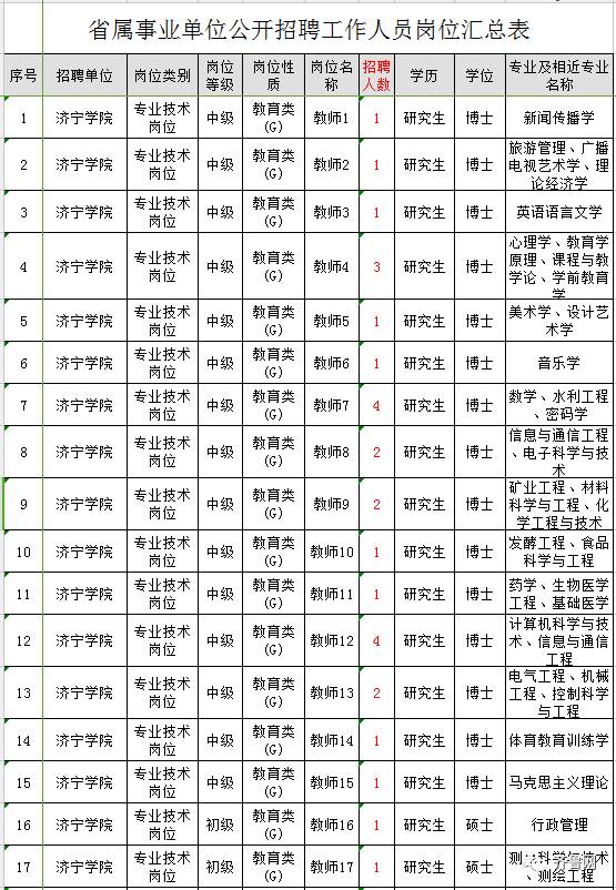 济宁学院拟面向社会公开招聘初级专业技术岗位工作人员18人,中级专业技术岗位工作人员26人。