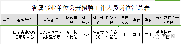 省建筑标准服务中心拟面向社会公开招聘中级专业技术岗位工作人员1名。