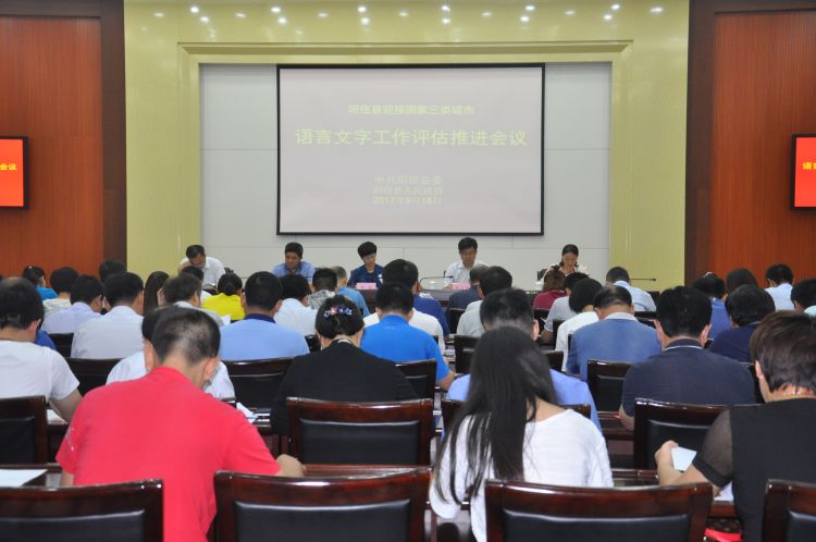 9月18日,我县召开迎接国家三类城市语言文字工作评估推进会议。副县长李美出席会议并讲话。会上,宣读了《阳信县迎接国家三类城市语言文字工作评估实施方案》和《阳信县语言文字工作委员会关于在全县党政机关等四大领域工作人员中开展普通话培训测试的通知》,李美代表县政府与会员单位代表签订了责任书。