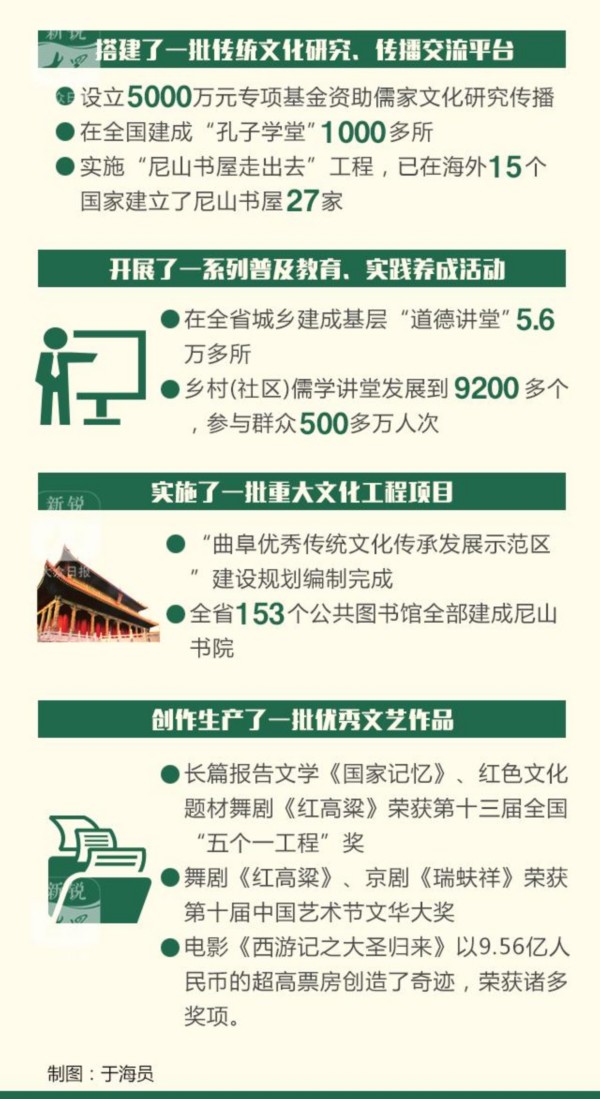 传承弘扬中华优秀传统文化,山东担负着重要责任和特殊使命。我省明确了“项目化”思路,集中力量抓好重点项目建设,以重点项目带动优秀传统文化传承发展工作整体推进。