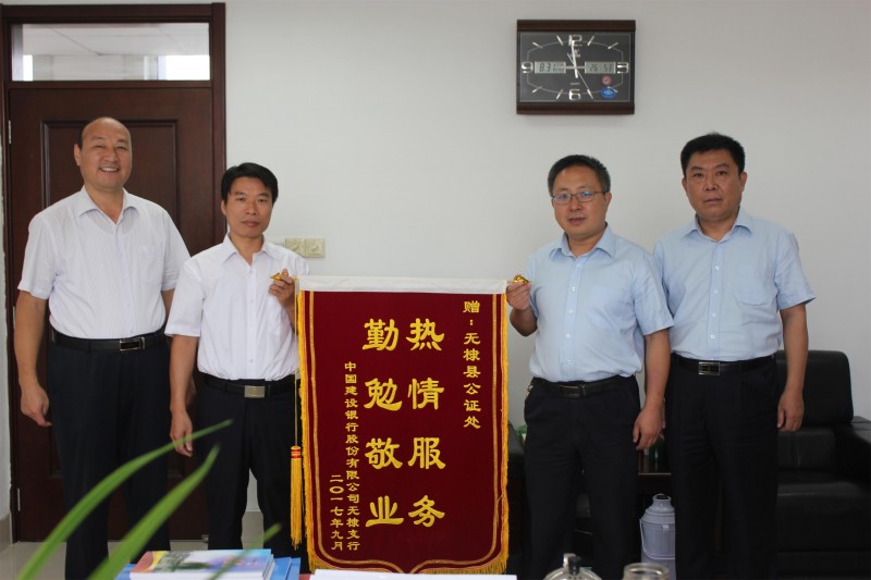近日,建设银行无棣支行负责人将一面“热情服务勤勉敬业”的锦旗送到县公证处,感谢公证工作及时介入金融借款,降低风险化解隐患。