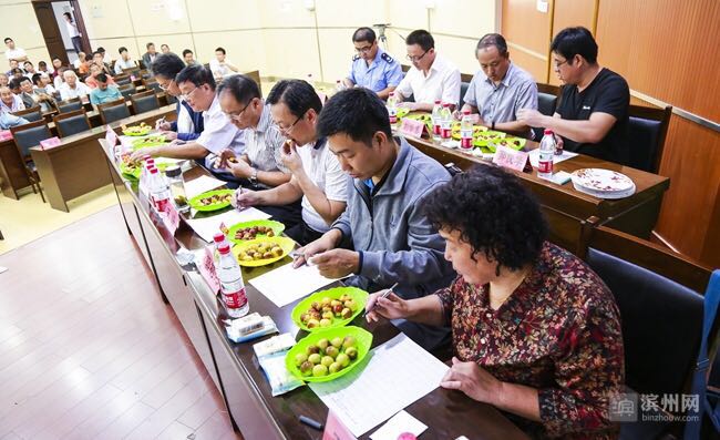 在决赛现场,评委针对每个参赛冬枣的色泽、口感、甜度及理化指标等方面品尝及检验,在台下也有不少参赛的枣农到现场观看评审,并相互交流着种植经验。