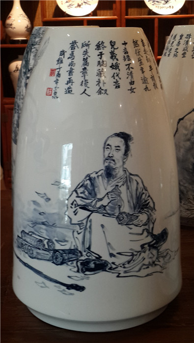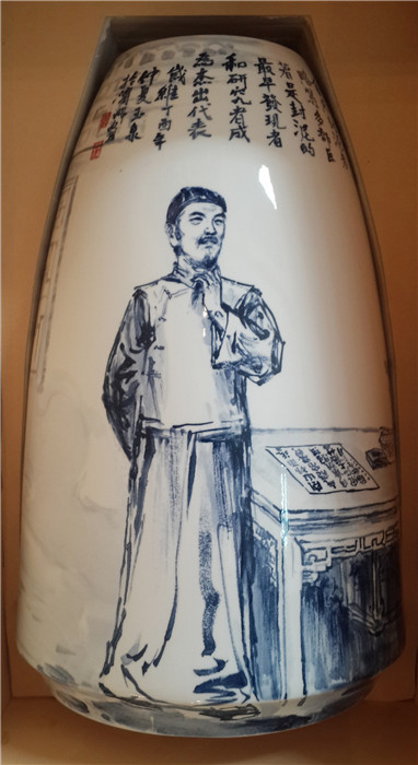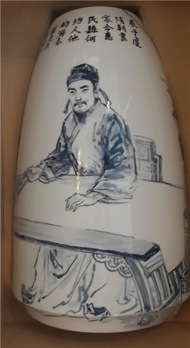 李玉泉介绍,作品的创作灵感首先来自对海瓷的认识,创作冲动则来自于对滨州历史人文传承的使命与追求。他说,滨州有着悠久的人文历史和璀璨的文化,孕育了灿若繁星的杰出人物,他们像银河中的繁星闪烁,给后人以启迪,令后人倍感自豪。如何表现这些历史先贤中的人物并能够长期保存下去,是当代艺术家的责任。最终,经市县文联与海瓷公司研究协商,决定选择最具代表性的滨州十大历史名人画到海瓷瓶上。