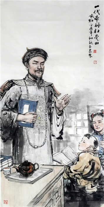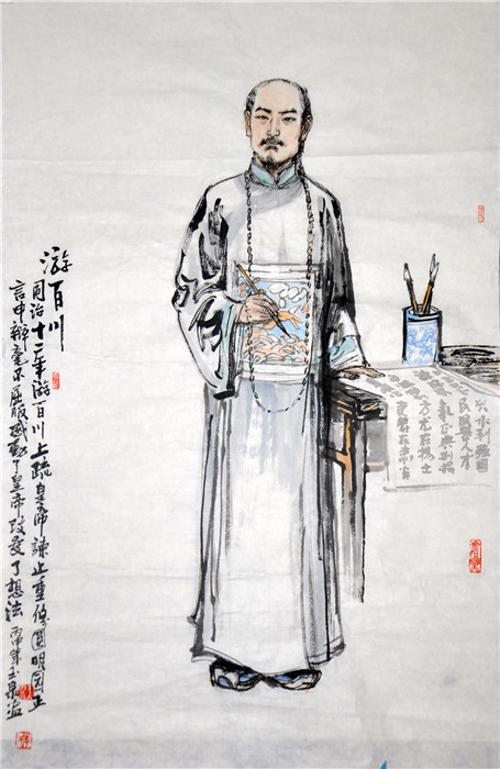 谈到绘画艺术创作上的风格运用与特有的表现形式,李玉泉介绍,在创作的过程中,首先从表现形式上选择了人们喜闻乐见的现实主义的表现方式,以写实为主,有利于对历史人物形象的塑造与刻画。选择每一个历史人物所处的历史地位及环境和他们一生中最闪光的一个典型情节加以刻画渲染,尽力去挖掘人物内心世界的情感。同时也按照海瓷艺术绘画的规律去调整处理画面,尽力追求海瓷与中国画的完美结合。