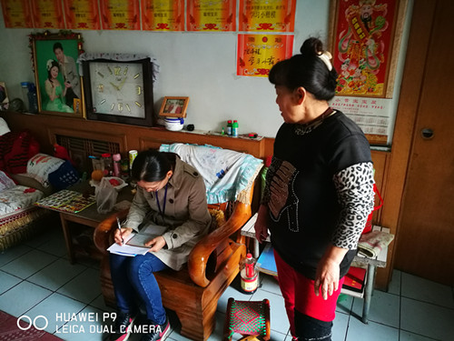 高新区统计分局按照区党工委、管委会的部署要求,认真进行了落实。在这次“大走访大调研”活动中,统计分局负责小营办事处新兴社区王家村和新闫居委会两个村(居)的走访调研任务。为确保走访调研不流于形式,统计分局制定了详实可行的走访调研计划。首先,和新兴社区进行了碰头对接,并积极沟通联系包村干部,取得了所走访村居的第一手资料;其次,征求了所包村居“两委”班子成员的意见和建议,确定了走访调研方案,做到逐门逐户全面走访,不留死角;第三,结合本单位及所包村居实际,统计分局制定了5个走访调研小组,每组2人,负责35户左右,划片分区域进行走访,既节省了时间,又提升了工作效率;第四,各个小组成员在走访调研之前要学深吃透《民生服务手册》知识,确保能及时准确地回答群众提出的问题,对于能当场解决的问题要当场解决,暂时解决不了的,要登记备案在册,回来后积极反映给相关部门予以解决;第五,在走访调研过程中,为群众带去了“一封信”(致全区群众的一封信)、发放了“一张卡”(便民服务卡)、记好了“一张表”(社会民意大走访记录表)。