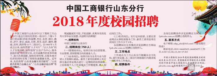 中国工商银行2018年度校园招聘报名时间延长至10月22日,有意报滨州市辖区内工商银行的可登录中国工商银行人才招聘官方网站: