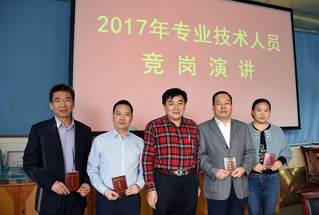 会上,2017年晋升专业技术人员职务人员进行了竞岗演说,他们结合我院“五引五促进三创一降一补一增”目标和要求,分别阐述了晋升新的技术岗位后的工作计划、责任目标和工作措施,表明了提升能力、科技创新、服务发展的态度和决心。沈志强院长为新晋专业技术人员颁发了聘书,希望他们在新的岗位上取得新成绩,为研究院各项事业发展做出更大贡献。