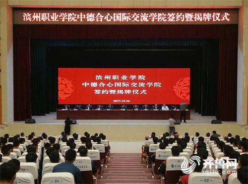 10月26日上午10时18分,滨州职业学院中德合心国际交流学院揭牌仪式在报告厅隆重举行。