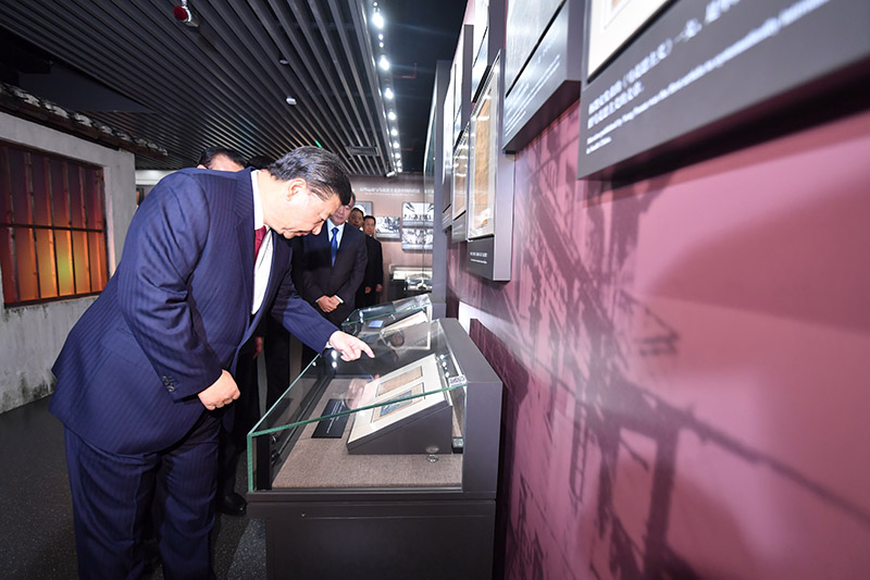 10月31日,中共中央总书记、国家主席、中央军委主席习近平带领中共中央政治局常委李克强、栗战书、汪洋、王沪宁、赵乐际、韩正,瞻仰上海中共一大会址和浙江嘉兴南湖红船。这是31日上午,习近平等在上海中共一大会址纪念馆参观。新华社记者 李涛 摄
