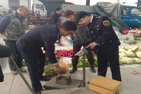 为进一步推进计量惠民工程,规范农贸市场计量器具的管理,使其公平、准确、合法, 11月1日县质监局计量所工作人员协调县农贸市场管理处对阳城八路农贸市场在用的电子秤进行了免费检定,共检查摊位93家,检定电子秤115台(件),合格率98%以上。对经检定不合格的电子秤,市场管理人员监督更换或调修,对大多的市斤秤责令改为法定计量单位的公斤秤,检定合格的在秤体的明显位置张贴了计量器具强检标识。