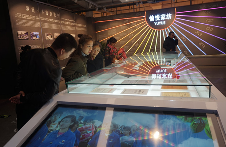 愉悦家纺这座居家世博馆总面积达6000平方米,由四大部分构成,分别为纺织艺术馆、企业发展馆、纺织专业馆和科技愉悦馆。纺织艺术馆主要展示的是古代的纺织工具,以及由这些纺织工具制造出来的有代表性的纺织产品。企业发展馆主要展示的是滨州纺织工业史、小营纺织史以及愉悦家纺的发展历程,用大量史料、文物和画卷的形式进行呈现。纺织专业馆按照纺织产品的研发创意—纤维及纱线选择与设计—织物组织与纹织设计—面料设计(含辅料设计)—面料生产加工—成品款式设计—成品加工等工艺流程,以清晰的脉络走向,向观众呈现一个纺织全产业链。科技愉悦馆则是对愉悦家纺未来科技和发展方向的一个展示,包括各种高科技纺织产品、可穿戴设备、睡眠仓以及健康云服务平台等。(此文段来自滨州网)