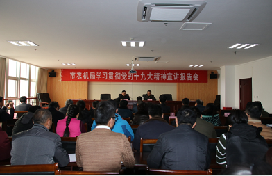 为深入学习宣传贯彻党的十九大精神,12月14日,市农机局召开中共滨州市农机管理局党组理论学习中心组读书会及市农机局学习贯彻党的十九大精神宣讲报告会。市局领导班子、市局各科室(单位)主要负责人、各县区农机主管部门主要负责人、各县区农机专业合作社理事长代表参加会议。