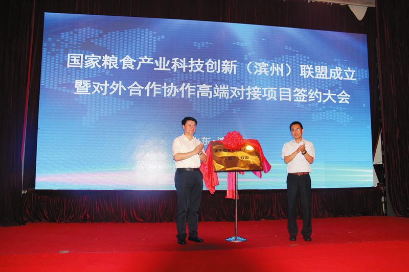 2017年9月8日,国家粮食产业科技创新(滨州)联盟成立暨对外合作协作高端对接项目签约大会在滨州举行。国家粮食局仓储与科技司副巡视员张成志,国家粮食局科学研究院院长杜政,山东省粮食局副局长王传民,中国农科院农产品加工所所长戴小枫,滨州市委副书记、市长崔洪刚,滨州市委常委、常务副市长赵庆平出席会议。张成志、崔洪刚为国家粮食产业科技创新(滨州)联盟揭牌。