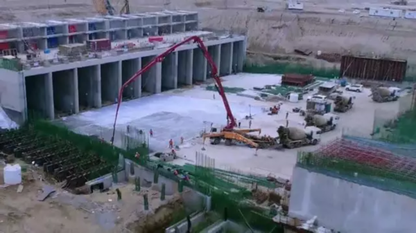 与周翔同时抵达的,还有这支中国工程队。他们要在这座沙漠新城里,建设最重要的基础设施,循环用水系统。这次的泵送任务,对于臂架的承压能力是个巨大的考验。