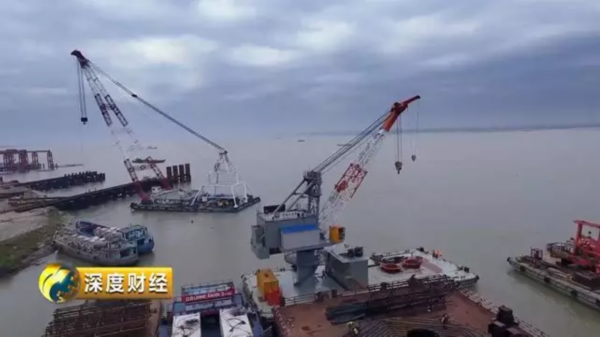 历经48小时,总长120米、直径3米、总重550吨的全球最大的桥梁主墩钢桩,稳稳地嵌入河床120米深处。