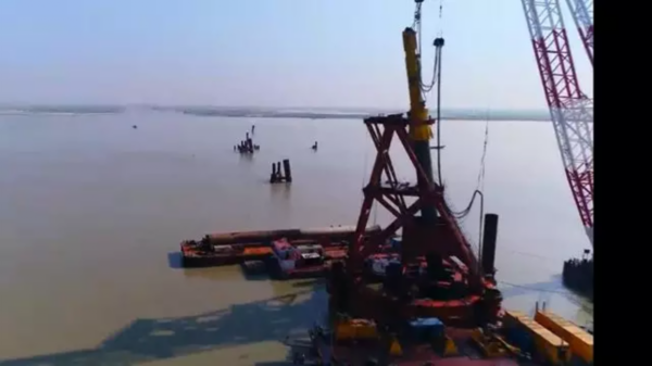 液压锤击打钢桩的声音,再次在帕德玛河上响起。这一次击打的时间要比第一次多出近4个小时。为了降低由此带来的热量,需要不断注水给钢桩降温。