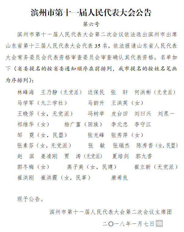 滨州市第十一届人民代表大会第二次会议,在圆满完成各项议程后,于1月7日胜利闭幕。