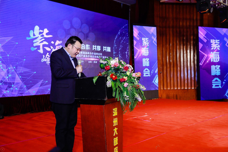 2018年1月10日下午,紫海峰会(第一届)2018产业联盟战略合作高峰论坛暨紫海集团产业合作项目全国推广会在滨州大饭店举行,滨城区副区长韩晓出席会议并致辞。
