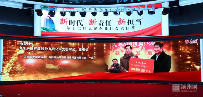 滨州日报·滨州网讯 1月11日下午,由人民日报社人民网主办的第十二届人民企业社会责任奖颁奖典礼在北京人民日报社新媒体大厦举行。京博控股党委书记、董事长马韵升荣获第十二届人民企业社会责任年度人物奖。