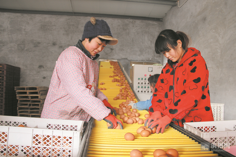 原来,鸡舍内传输带会自动将鸡蛋运到鸡舍外,只要5-6人集中拾捡3小时,就可以完成2栋鸡舍所产鸡蛋的拾捡装箱工作,而同等重量的鸡蛋在传统养殖场则需要十几人花费一天来完成。