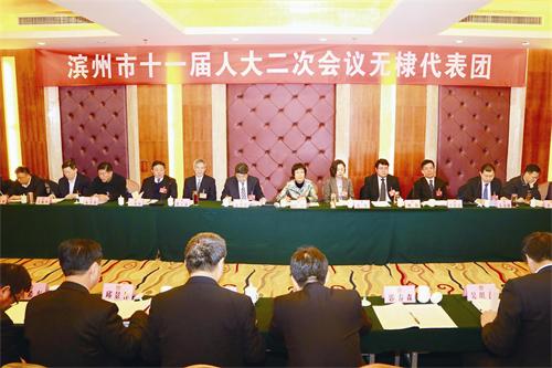 1月4日,参加滨州市十一届二次会议的无棣代表团全体代表在滨州大饭店天和厅认真讨论政府工作报告。市领导孟晓雷、刘凤、曹玉斌、赵霞等参加无棣代表团讨论并为无棣发展支招。县委书记丁海堂主持讨论。