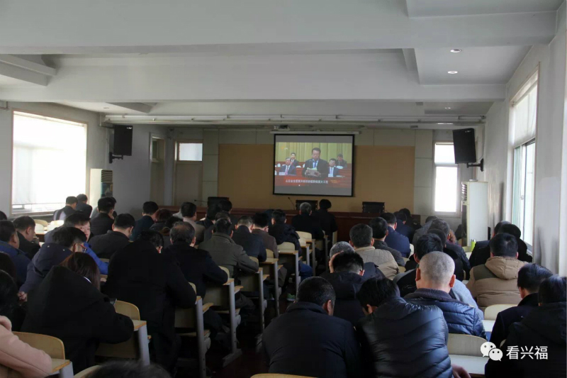 2月22日,正月初七上班第一天,山东省全面展开新旧动能转换重大工程动员大会在济南召开。兴福镇全体机关干部收听收看了动员大会实况。