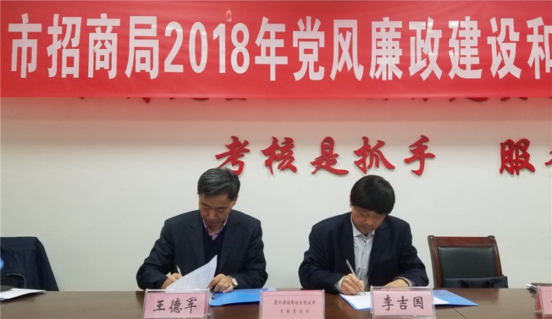 2月26日,市招商局召开党组会议,专题研究党风廉政建设和反腐败工作,并层层签订了2018年度廉洁勤政效率效能目标责任书。局党组全体成员参加会议,市纪委派驻第九纪检组平金增、市招商局部室负责人列席会议。