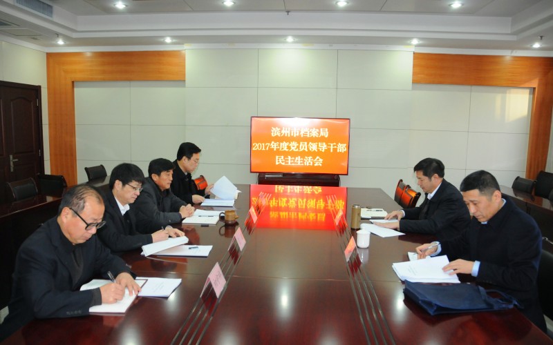 2月11日,滨州市档案局召开2017年度党员领导干部民主生活会。市委副秘书长、市档案局党组书记、局馆长劳景龙主持会议,党组副书记、调研员范波,党组成员、副局馆长张朝伟、初守祥、韩宗庆参加会议,市督导组副组长、市纪委副县级纪律检查员王文成同志到会指导。