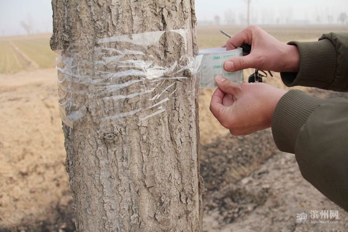缠绷带防虫患 惠民县林业局严密监测春尺蠖虫情