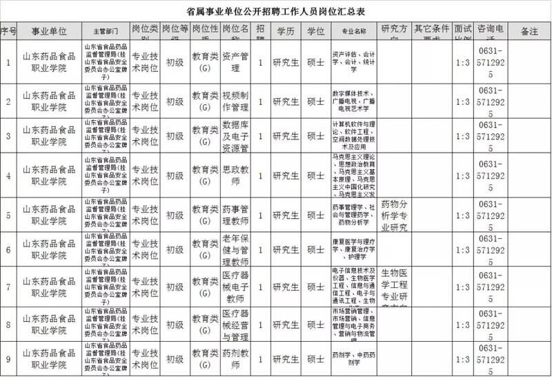 山东药品食品职业学院招14人
