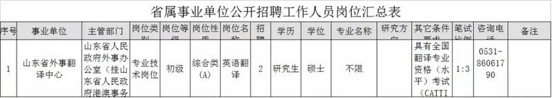山东省外事翻译中心招2人
