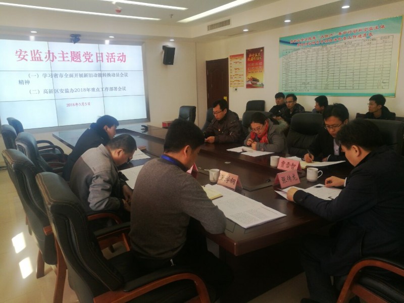 3月5日上午,高新区安监办召开主题党日暨2018年重点工作部署会议。区党工委委员、管委会副主任张传龙出席会议。