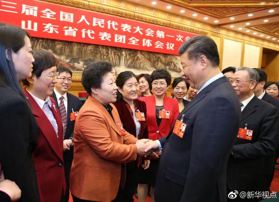 【总书记关心山东青少年足球发展】8日参加山东代表团审议时,来自临沂的张淑琴代表介绍了当地发展青少年足球的情况,并将一张山东郯城第一中学女子足球队训练的照片送给总书记看。听说球队即将走出国门,到以色列参加比赛和交流,总书记关心地询问当地有没有足球传统。得知9年前才开始组建球队,总书记称赞发展得很快。(文字:霍小光,摄影:姚大伟)