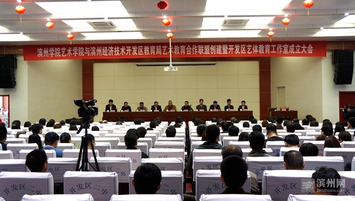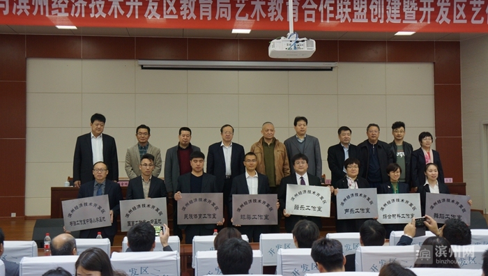 3月14日,滨州学院艺术学院与滨州经济技术开发区教育局艺术教育合作联盟创建暨开发区艺体教育工作室成立大会在开发区二中举行。