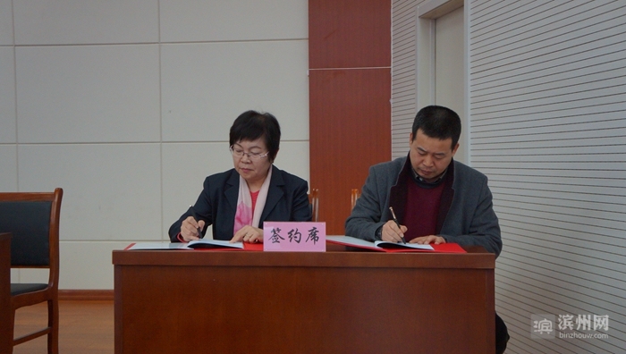 滨州学院艺术学院常务副院长孙兆俊与滨州经济技术开发区教育局副局长张永霞代表双方签约