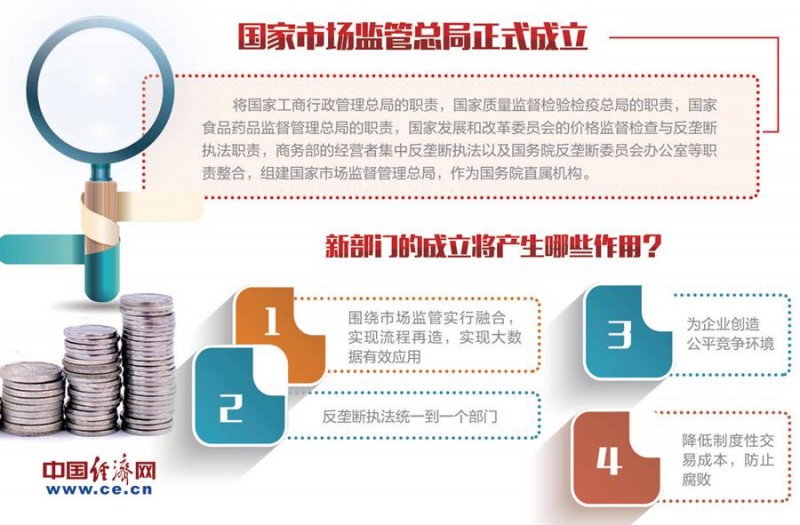 题要:近年来,大量市场监管问题已经转到线上,新业态新模式层出不穷,传统的人盯人、上门查这一监管方式已无法适应新要求,只有利用大数据才能实现更好监管。专家表示,国家市场监管总局的正式成立,将有利于为企业创造公平的竞争环境,把反垄断执法统一到一个部门——