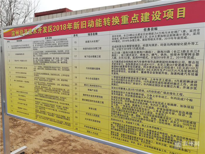滨州经济技术开发区2018年新旧动能转换重点建设项目:
