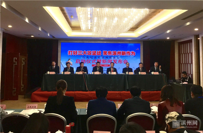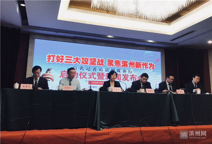 滨州日报·滨州网讯 4月2日,“打好三大攻坚战、聚焦滨州新作为”百名记者访滨州重大主题宣传活动启动仪式暨新闻发布会在滨州举行。来自人民日报社、新华社、大众日报社、山东电视台、搜狐、新浪、网易、腾讯、凤凰网、大众网、今日头条、一点资讯、北京时间等近60家国内有影响力的传统媒体、网络媒体、新兴媒体的记者参加此次活动,并将深入我市各县区进行实地采访。