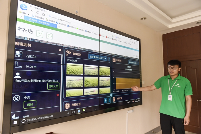 据悉,自去年以来,山东省滨州市邹平县元瑞农业科技公司在流转的20万亩土地应用田间监测管理系统,把采集的麦田风速、气压、降水量、空气温湿度、土壤盐浓度等大数据在开发的“智慧农业”终端上显示,指导山东、河南等各地的400多名农场管理员进行田间适时生产调节,使得大田小麦生产走向科技化、智慧化,促进小麦增产增收。