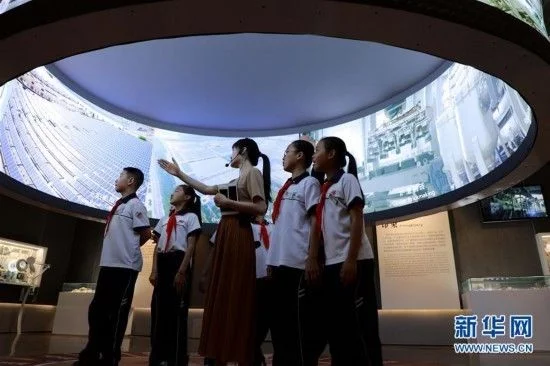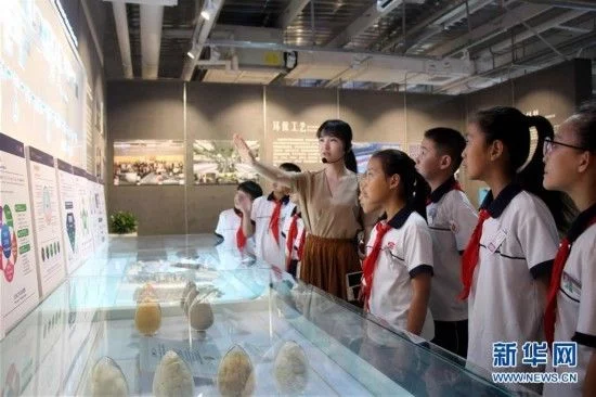 5月30日,小学生在山东省滨州市愉悦家纺居家世博馆里了解纺织工业生产流程。当日,山东省滨州高新技术产业开发区实验学校组织小学生到当地纺织类博物馆参观,让孩子们近距离了解纺织产品、工艺与科技。 新华社发(张春峰摄)