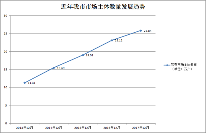 今年上半年,全市新增市场主体2.58万户,同比增长5.31%;全市实有市场主体27.66万户,同比增长17.61%,比改革初期(2014年2月为11.51万户)增长16.15万户,增幅高达140.31%,年增长率居全省前列。商事制度改革前,我市平均每天新设立企业79户;今年前6个月,平均每天新设立企业达195户,新设市场主体始终保持较快增长势头。